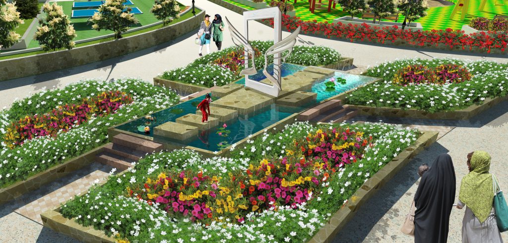 معرفی طرح: طراحی پارک بانوان با تمرکز بر تعریف فضاهایی متناسب یا نیاز های تفریحی و فراغتی این گروه در شهر فاروج در زمینی به مساحت 8000 مترمربع انجام شده است